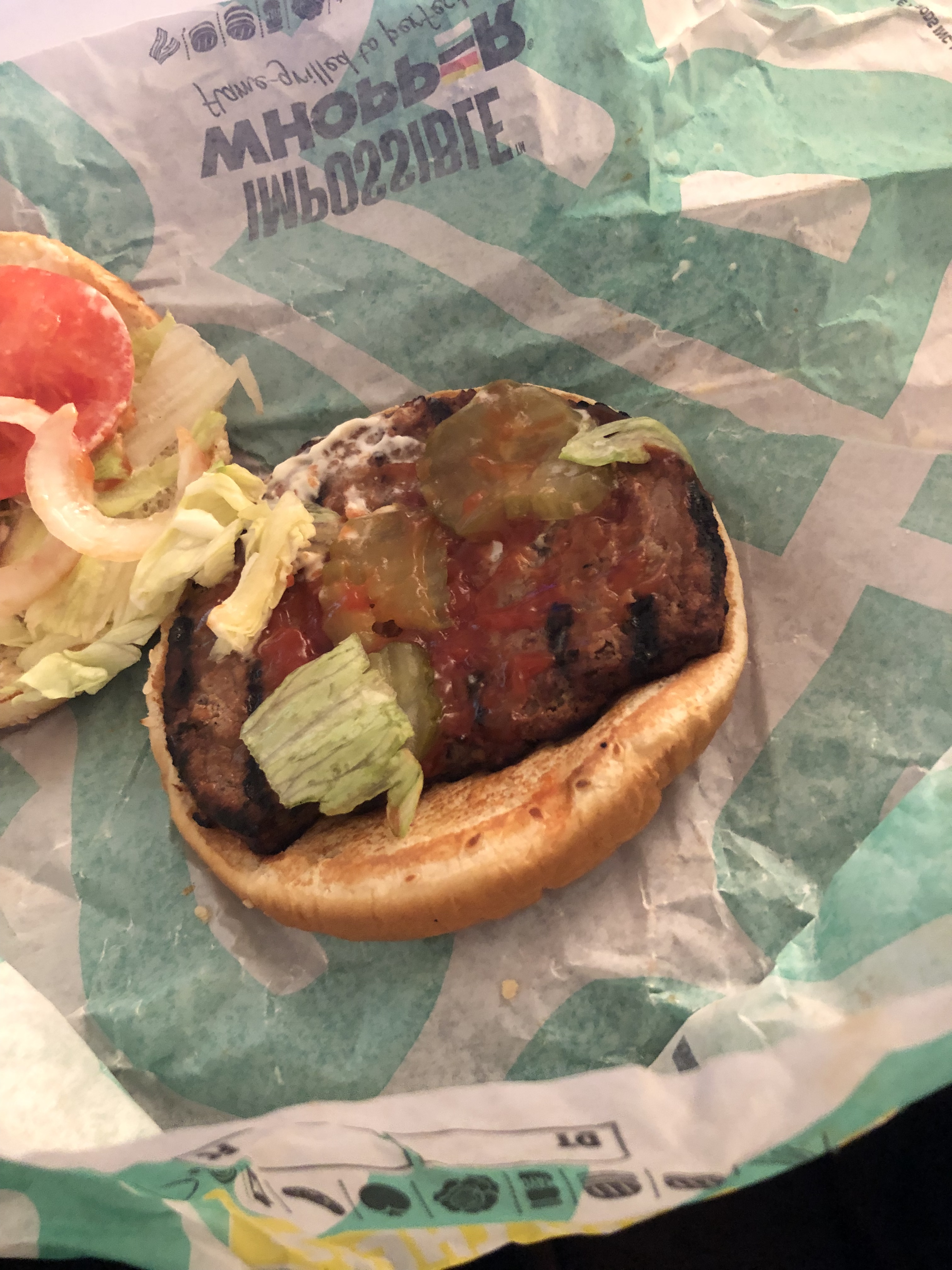 So this “burger” patty consists of soy protein, potato protein, coconut oil, sunflower oil, and heme. Not sure what heme is but I will eat it again, Heme (hear me; get it, you see what I did there, lol). BK, not sure if your planning on keeping this on your menu but you should as you have a winner here, at least I think so. Now because I ate that 10 pc Spicy with barbaque (yep just like that. Thanks Wendy for bringing these back, keep them!! PLEASE), I couldn’t eat all my sandwich. I will definitely recommend this to other veganmites or anyone who just want a healthier option with the fast food taste. The Impossible Burger from BK gets an 8 out of 10 burgers from me!!
